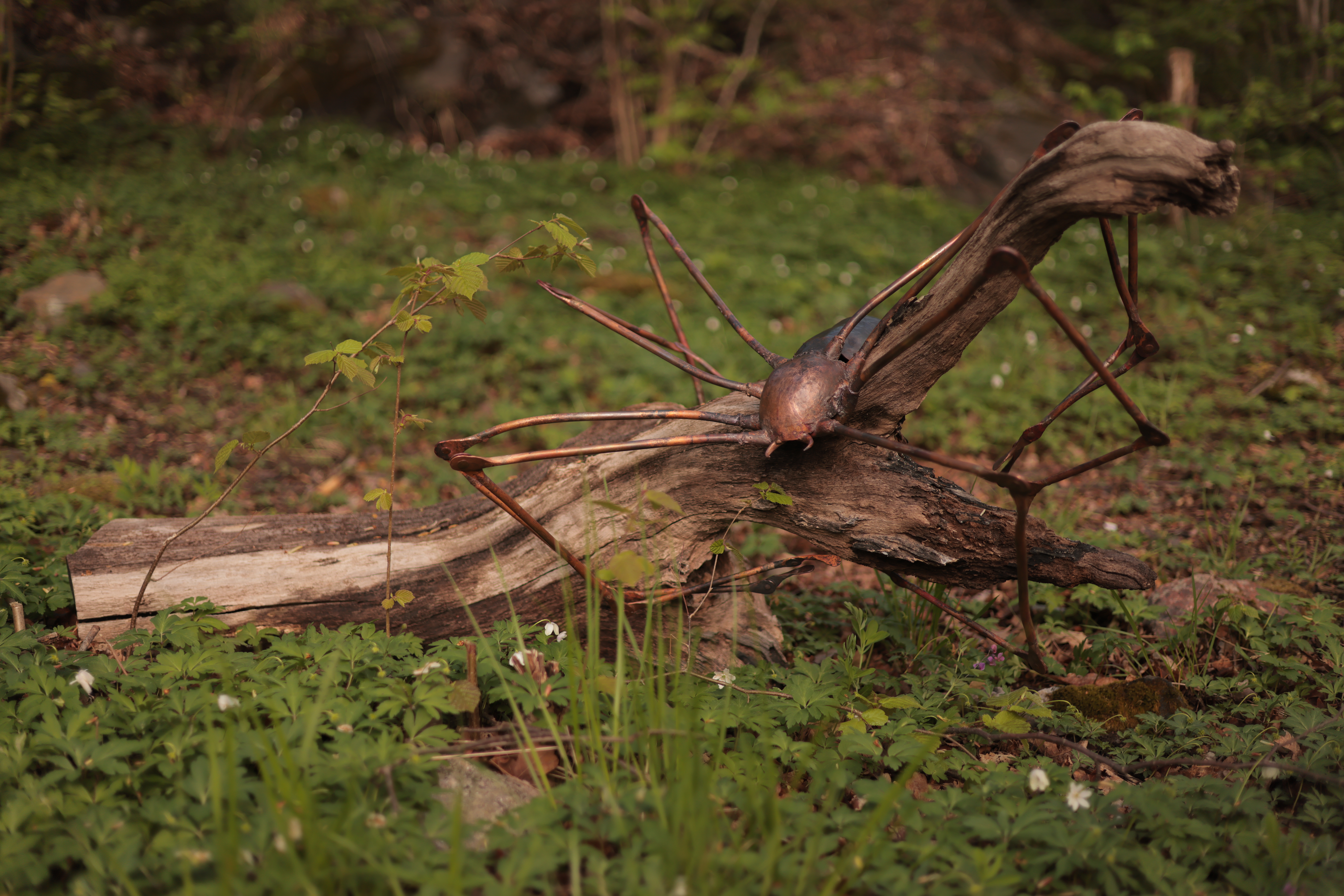 konstnärskap börjar. I min lust att lära mig nya saker och att lära ut. Genom mitt smyckesskapande vill jag ge bäraren av mina alster möjligheten att förstärka eller förändra egenskaper och identiteter. Dessutom vill jag ge en förutsättning att vara en del av ett sammanhang eller, om man så önskar, distansera sig från det. Jag har ett djupt intresse av människors identiteter samt hur människor förhåller sig till djur, natur, liv och död. Vid skapandet av många av mina alster används naturen som en inspirationskälla och jag vill försöka avdramatisera sådant som många människor tycker är äckligt eller otäckt. Med detta som grund skapar jag inte bara smycken utan även annan konst, så som tavlor, skulpturer och kläder. Syftet med mitt skapande är att göra avtryck, utbilda och att väcka känslor hos bäraren och betraktaren. Jag arbetar gärna med olika material så som metaller, olika ben från djur, torkade löv och akrylfärg. Med det här projektet vill jag undersöka fobier och huruvida ett objekts storlek påverkar människors förhållande till det. Jag har därför valt att intervjua fyra personer som lider av spindelfobi (arachnofobi) kring deras ogillande av spindlar. Deras svar har sedan använts för att göra fotografiska tolkningar. |